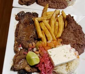 Carne Asada Arroz Frijoles Queso y Chismol Grilled steak chirmol rice refried beans cheese and pico de gallo. Bistec Encebollado Arroz Ensalada y Frijoles Steak stew served with. Mi bella honduras restaurant.